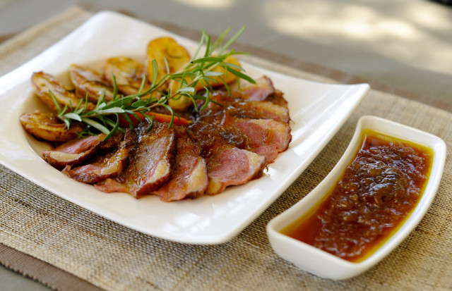 Копчена качка з апельсиновим соусом з червоним напівсолодким пляшковим вином